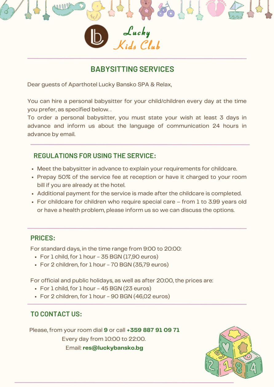 Babysitters and animators at Aparthotel Lucky Bansko are responsible for your child until the moment they hand it back to you.